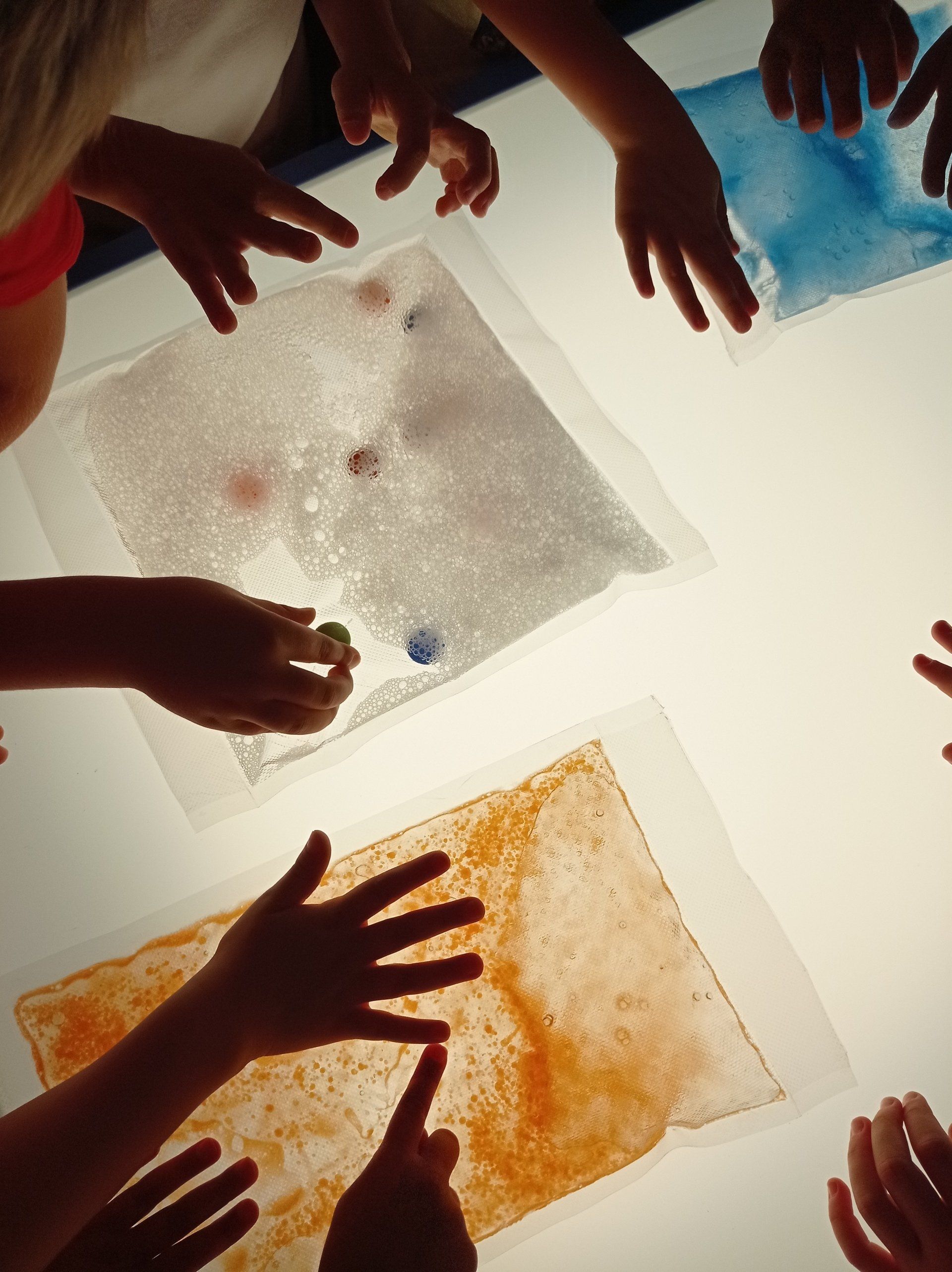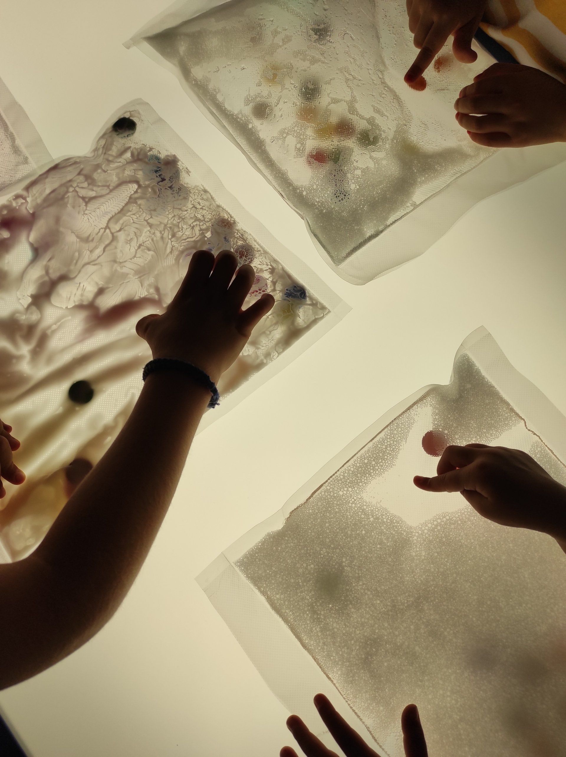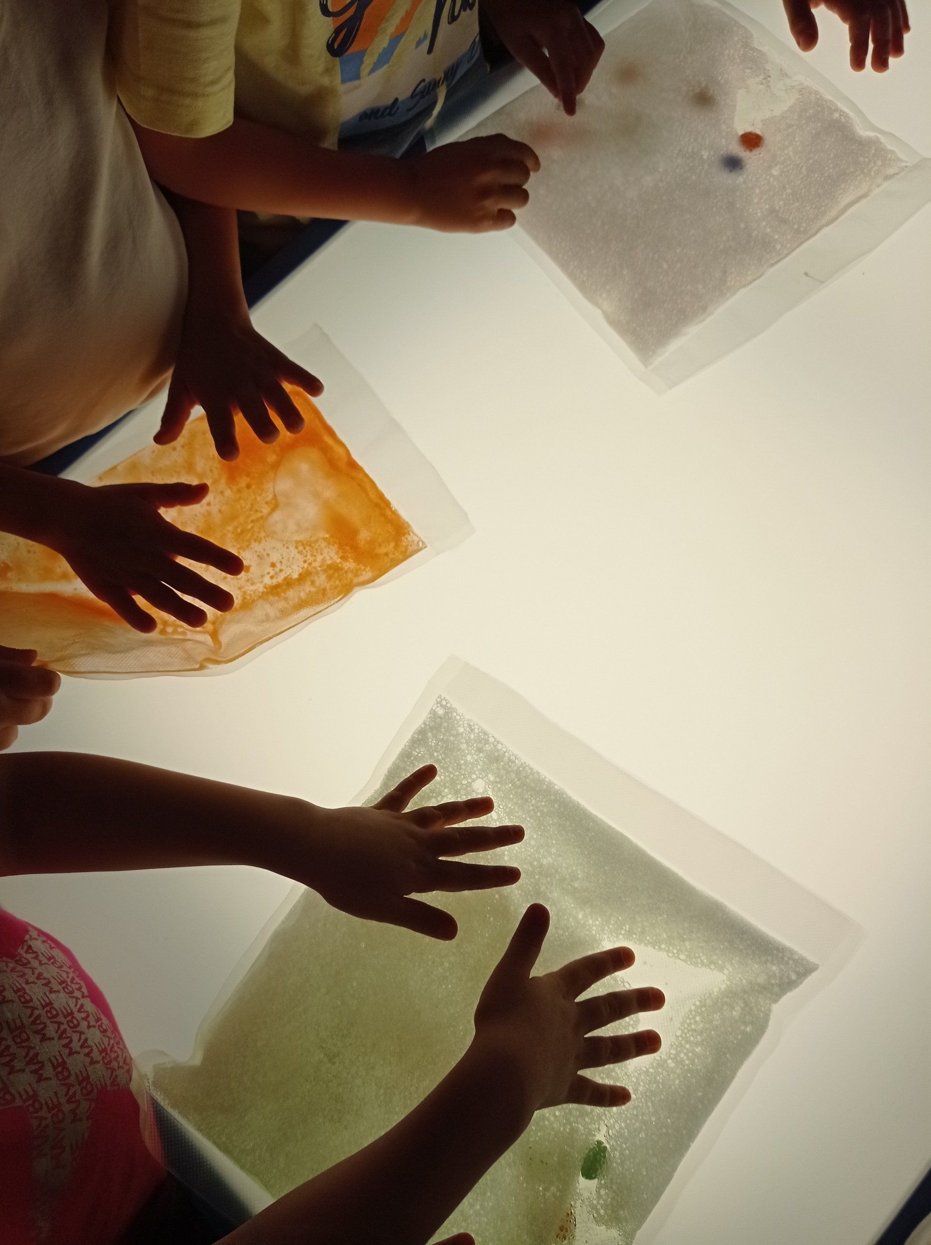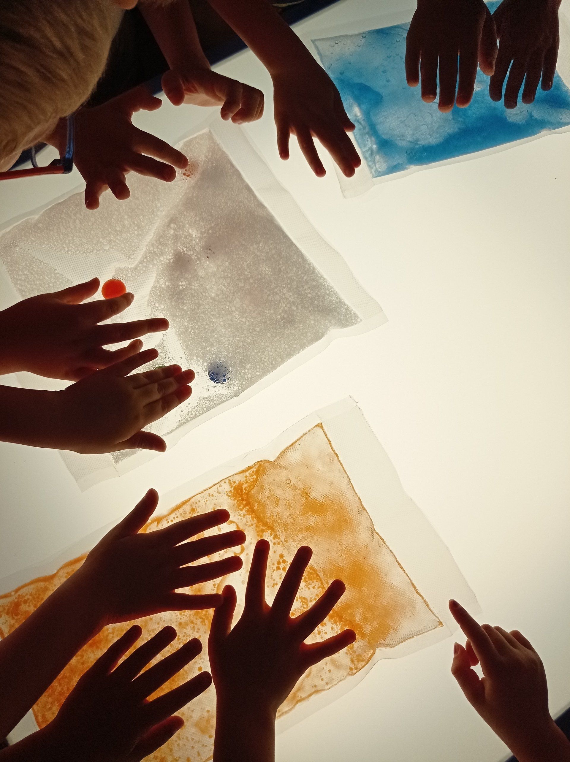 L’esperienza con i tavoli luminosi permette ai bambini di scoprire vari materiali, naturali e non, tramite l’esplorazione e l’utilizzo di una fonte luminosa che può modificare in parte l’oggetto in uso, creando un particolare effetto che incuriosisce il bambino e alimenta curiosità, creatività e fantasia.