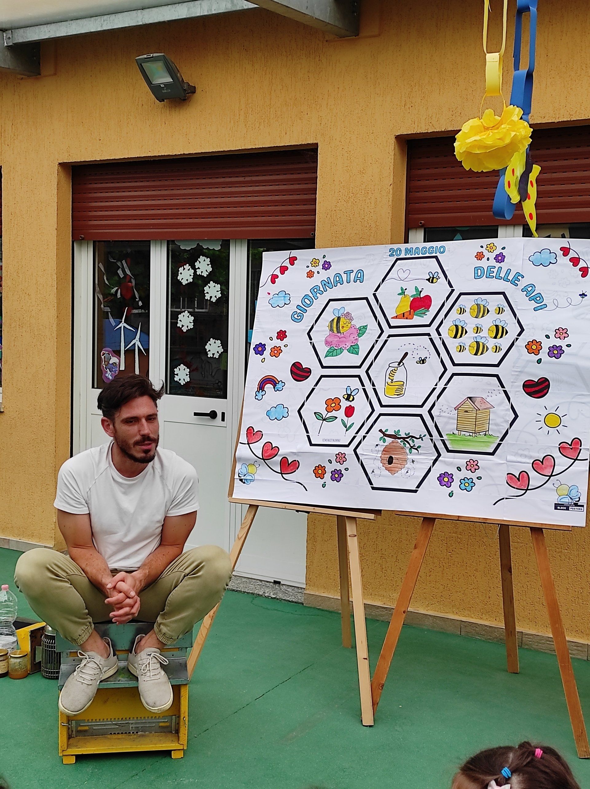 I nostri amici Puffi ci hanno accompagnato alla scoperta delle api…in occasione della giornata mondiale delle api ( 20 maggio 2022) è arrivato a scuola l’apicoltore Alessandro delle “ Api di Bea” che dopo un’interessantissima lezione sul regno delle api ci ha affidato un’arnia da decorare e i bambini hanno scelto il nome dell’ape regina: Cuoricina!