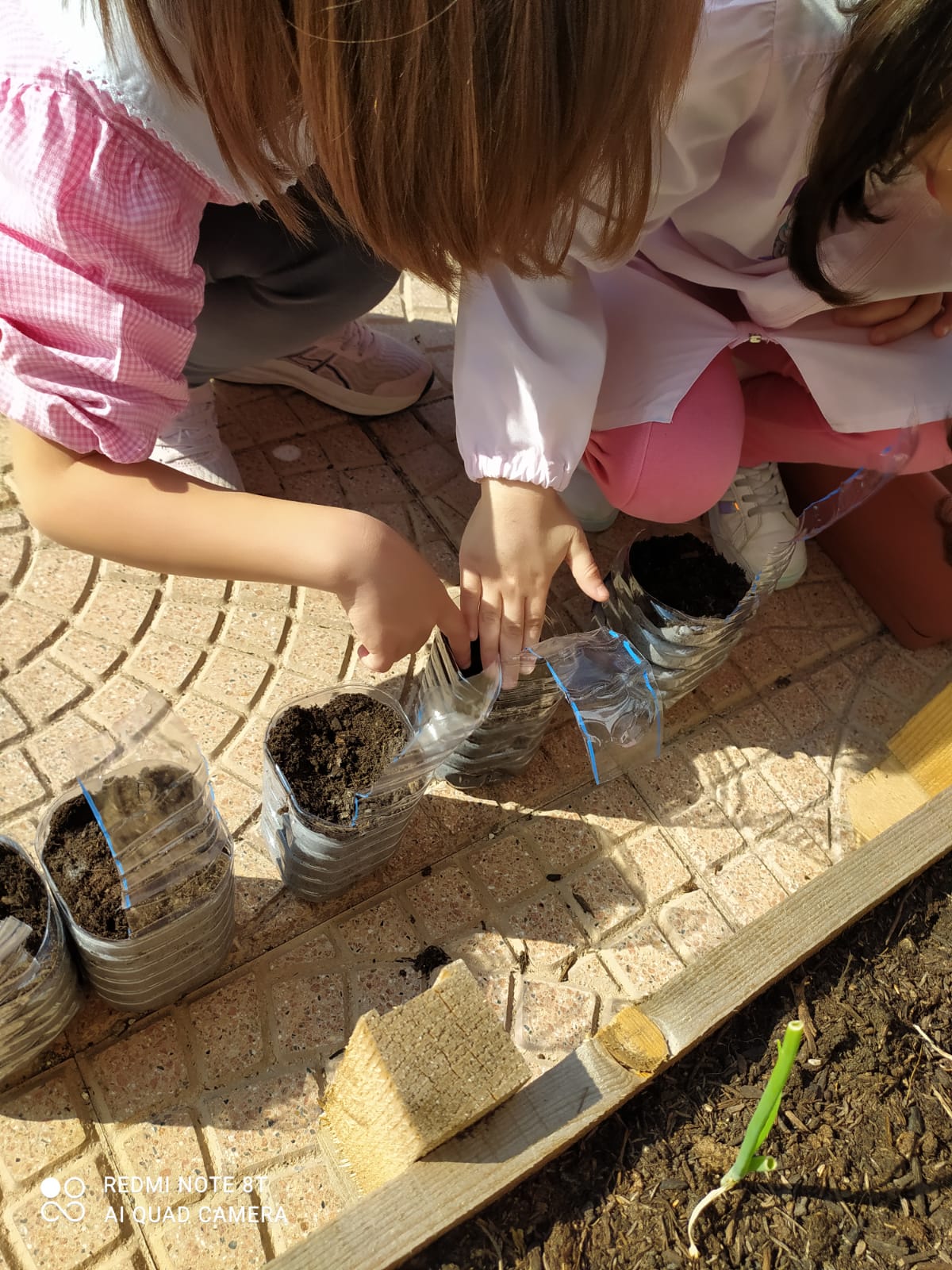 In occasione del Carnevale i bambini hanno ricevuto un kit contenente lenticchie, pirottini, occhietti e un cuoricino utile per trasformare delle uova in vasi con tante meravigliose faccine sorridenti. L’attività di semina delle lenticchie, svolta a casa con le famiglie, è proseguita a scuola dove i bambini bagnando i loro vasetti hanno potuto osservare la crescita delle piantine di lenticchie ( la chioma delle simpatiche faccine!)