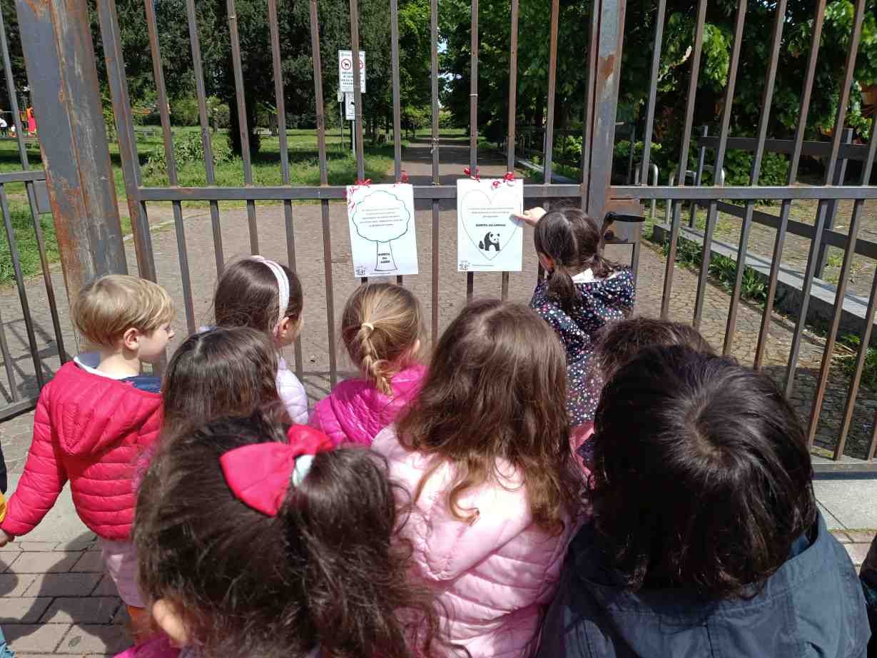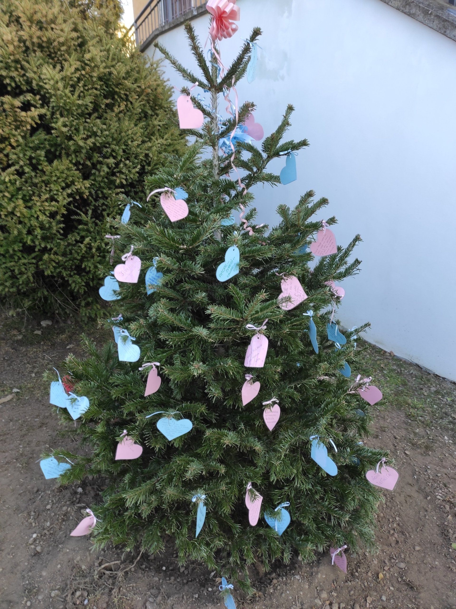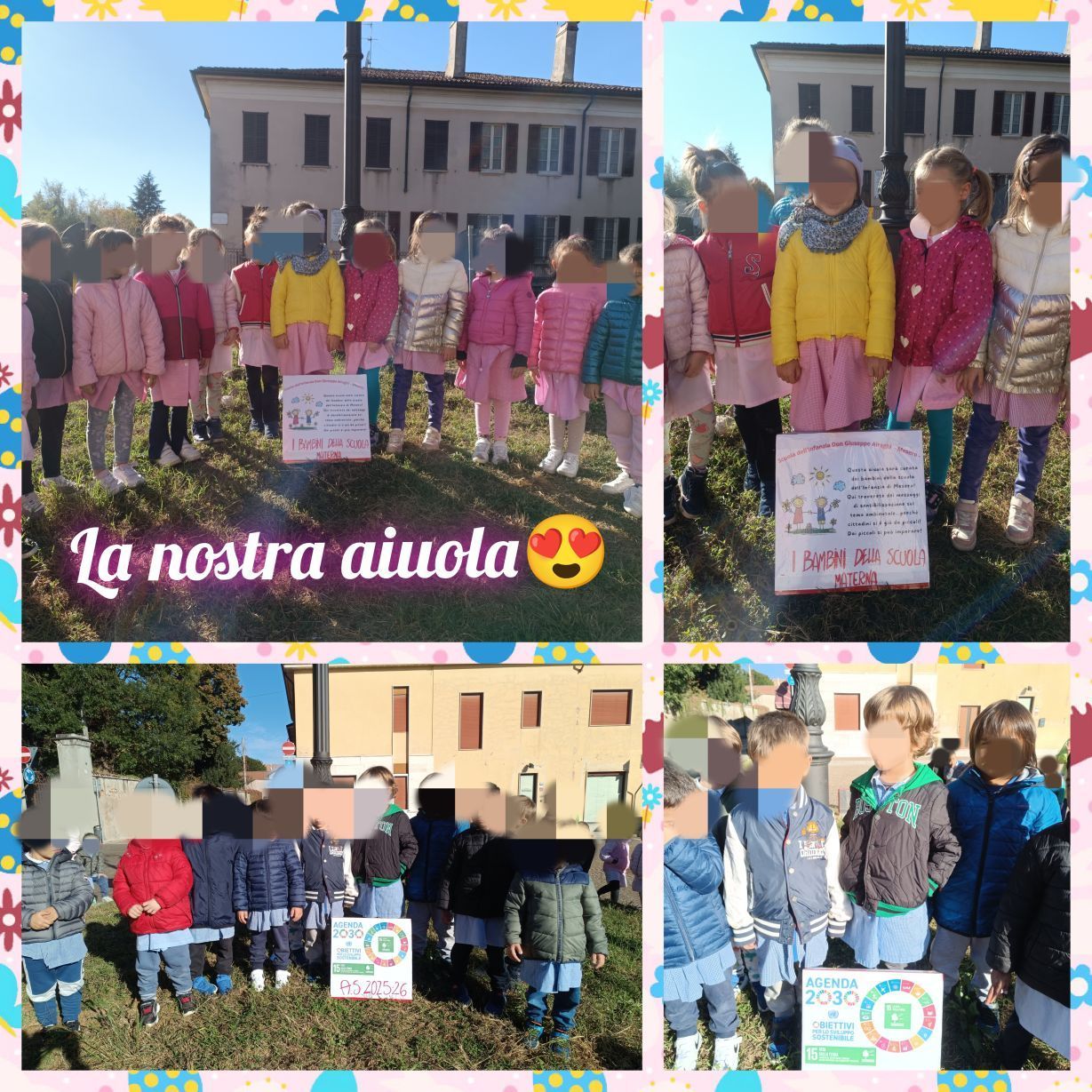 Il collegio docenti nell’anno scolastico 2021/22, sulla base della programmazione annuale “ I puffi presentano l’agenda 2030 e i suoi obiettivi”, ha proposto per i momenti di festa l’acquisto di alberi per rendere il giardino della scuola un meraviglioso prato… ecco quindi l’albero di pesche in occasione della festa dei papà, l’albero di ciliegie per festeggiare i nonni e l’albero dell’amore, un abete per festeggiare il Santo Natale, con tanti cuori appesi; ogni genitore ha scritto una parola/frase per esprimere l’emozione vissuta alla nascita del proprio figlio.