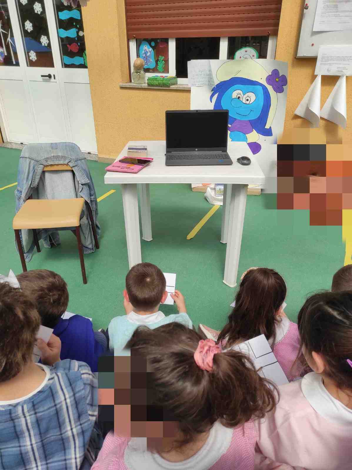 La coordinatrice Patrizia, a nome di tutto il collegio docenti, ha esposto il progetto realizzato a scuola in cui ogni bambino ha disegnato i dispositivi digitali che avrebbe voluto a scuola e spiegato il perché, ha inoltre mostrato alcune foto dell'esperienza del digitale all'aperto, che stiamo proseguendo questo anno.