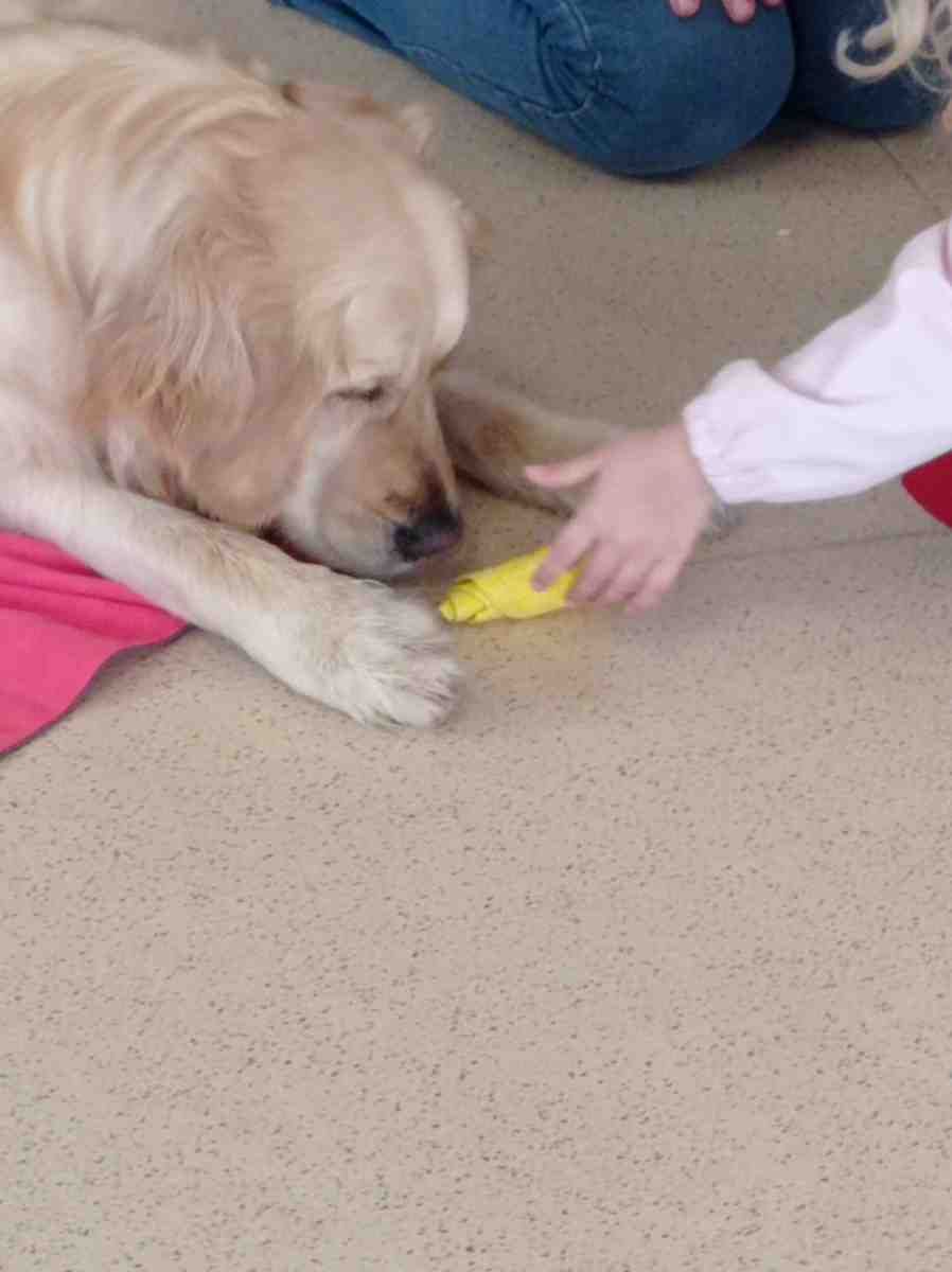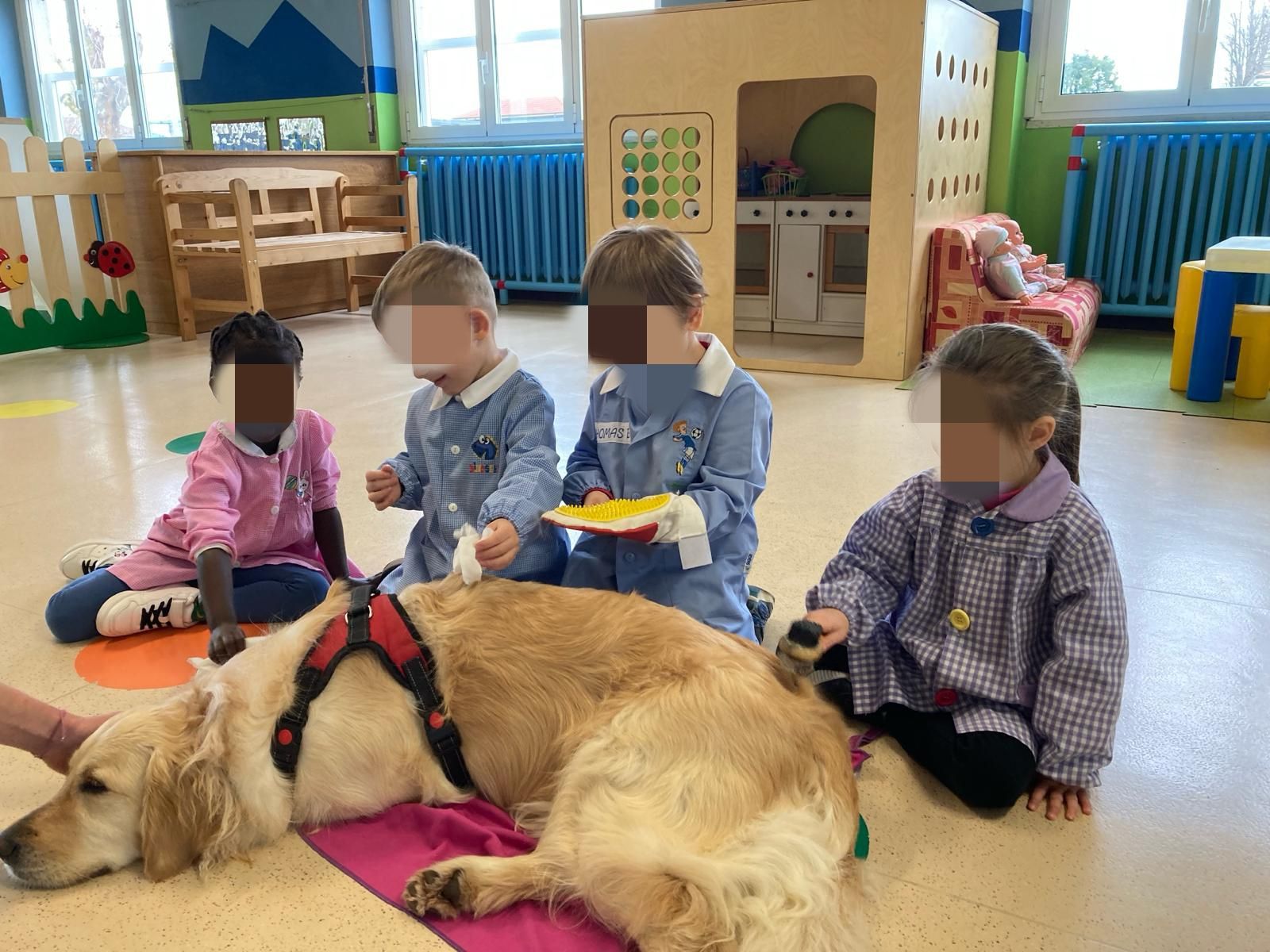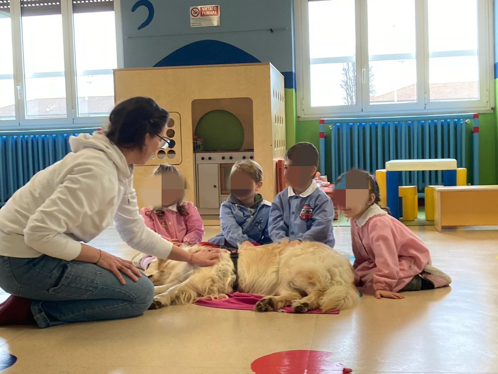 Grazie a Nina, la nostra amica golden retriever, e a Daniela Cattaneo, oggi abbiamo iniziato il nostro laboratorio. Vorremmo offrire ai bambini la possibilità di sentire, riconoscere, esprimere ed elaborare emozioni, favorire la cura della relazione con le persone e gli animali e capire cosa significa avere rispetto dell'ambiente e degli animali. Vivremo tante altre emozioni insieme a Nina!