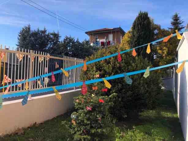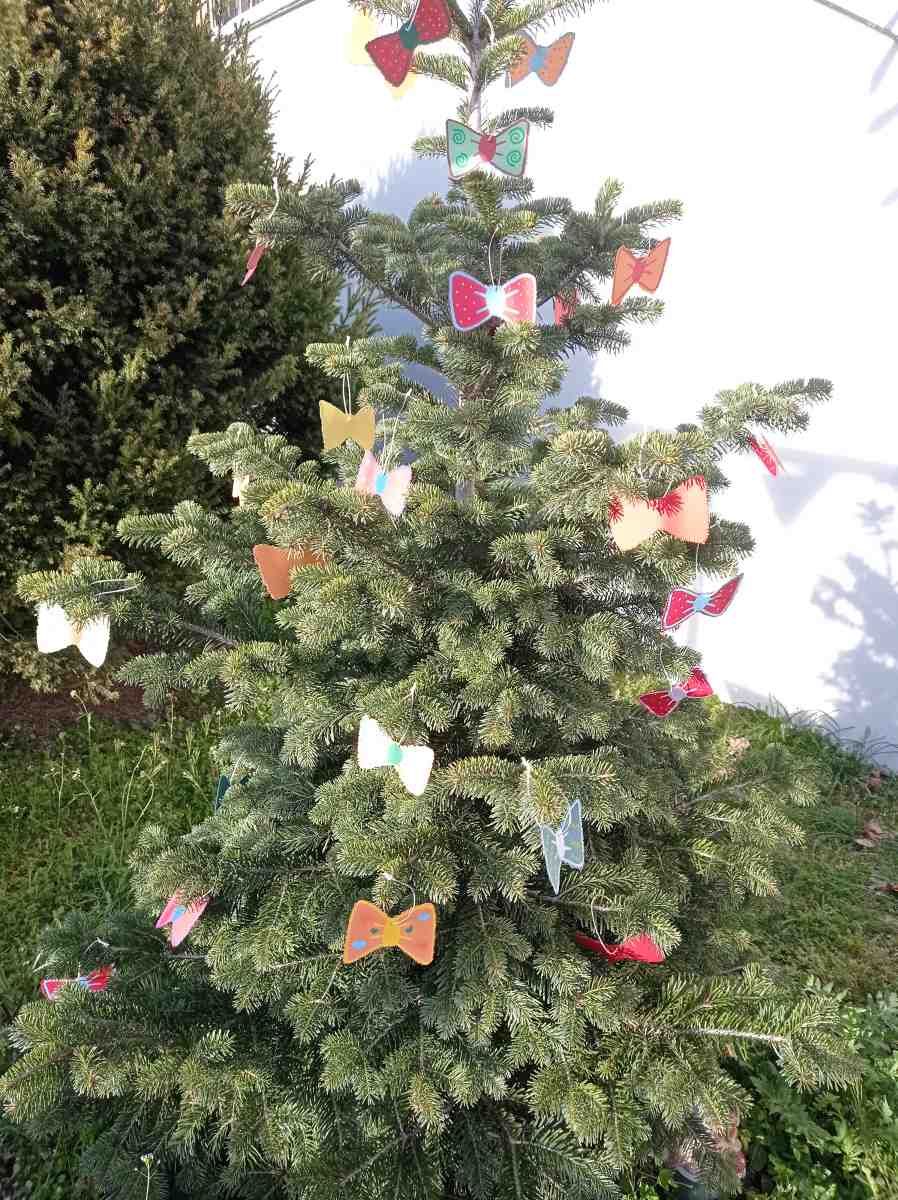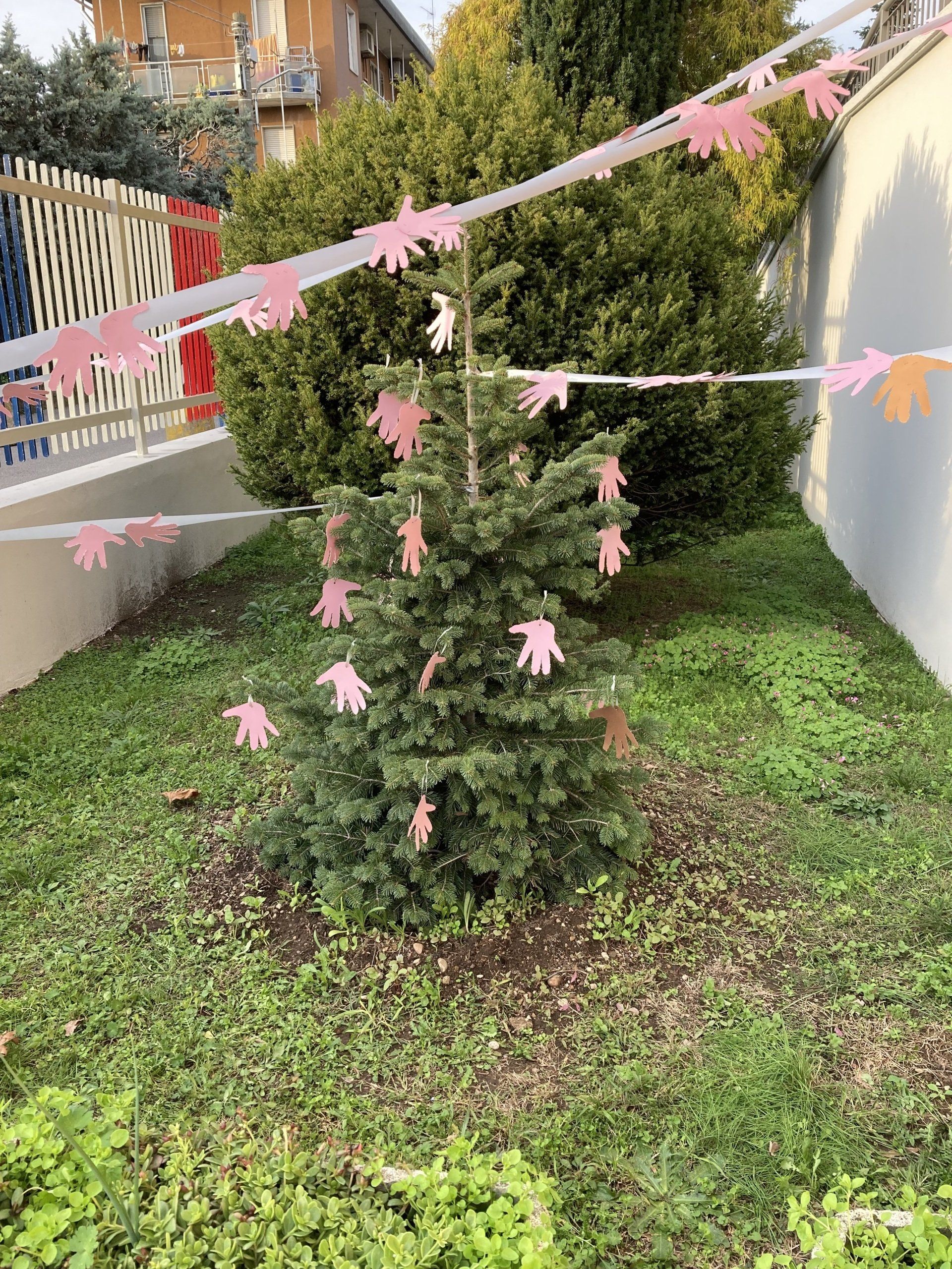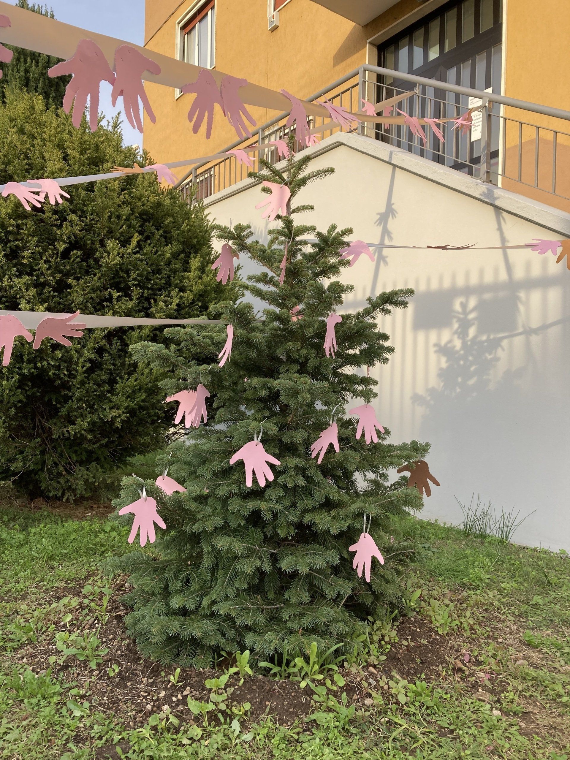 Nella giornata della gentilezza i bambini hanno trasformato un abete del giardino di un “ abete della gentilezza “ appendendo le sagome delle loro manine.