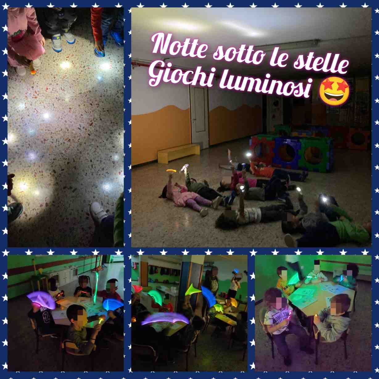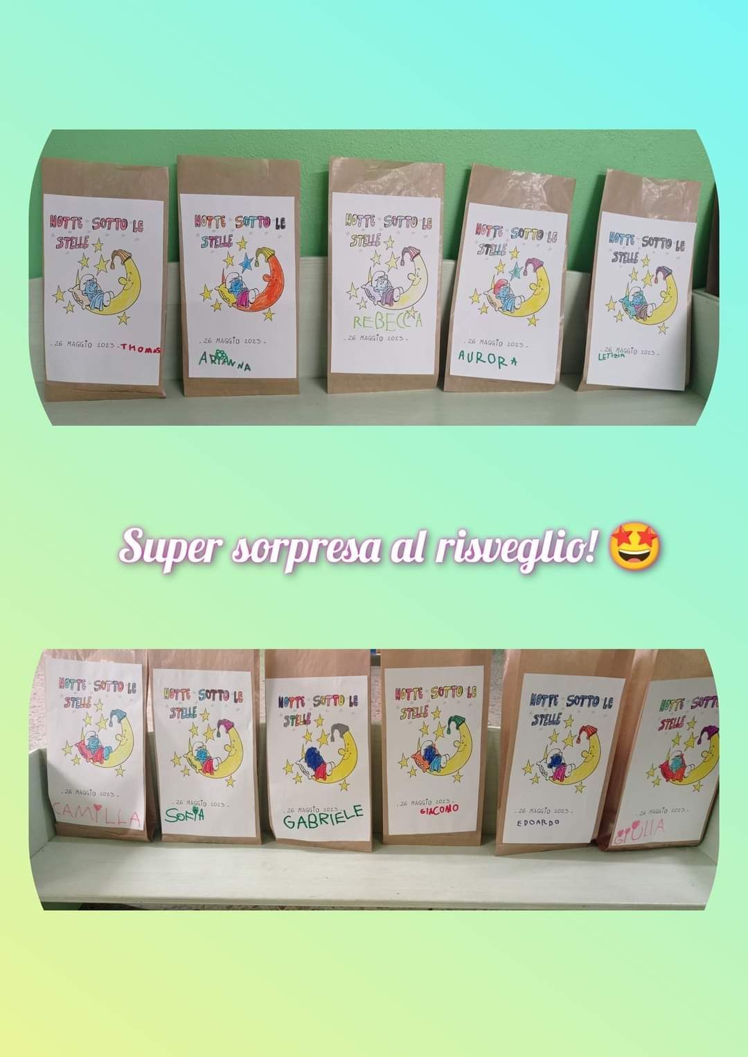 Dopo due anni di pausa, causa Covid, con grande entusiasmo generale abbiamo potuto riproporre un’iniziativa molto amata: NOTTE SOTTO LE STELLE. I bambini grandi della scuola, muniti di trolley contenente pigiama, lenzuola, ciabattine, peluche e torcia hanno trascorso una particolare serata con laboratori e letture a tema. È stata molto apprezzata la caccia alle stelle, nascoste nel giardino della scuola, trovate grazie alle torce… perché alle 23 il buio c’è! La serata si è conclusa con la nanna a scuola e al mattino tutti svegli per una buona colazione in attesa di mamma e papà.