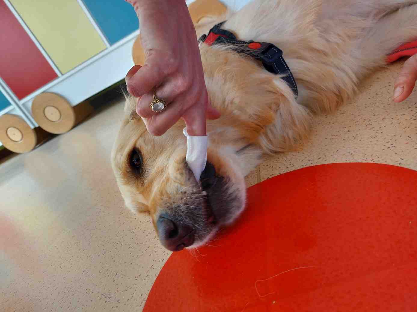 Oggi i bambini piccoli si sono presi cura di Nina: Daniela le ha lavato i denti, noi abbiamo spazzolato Nina, l'abbiamo portata a passeggio e coccolata.