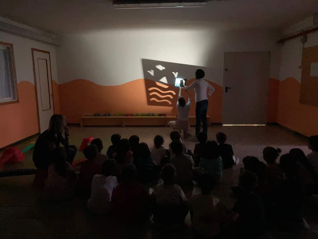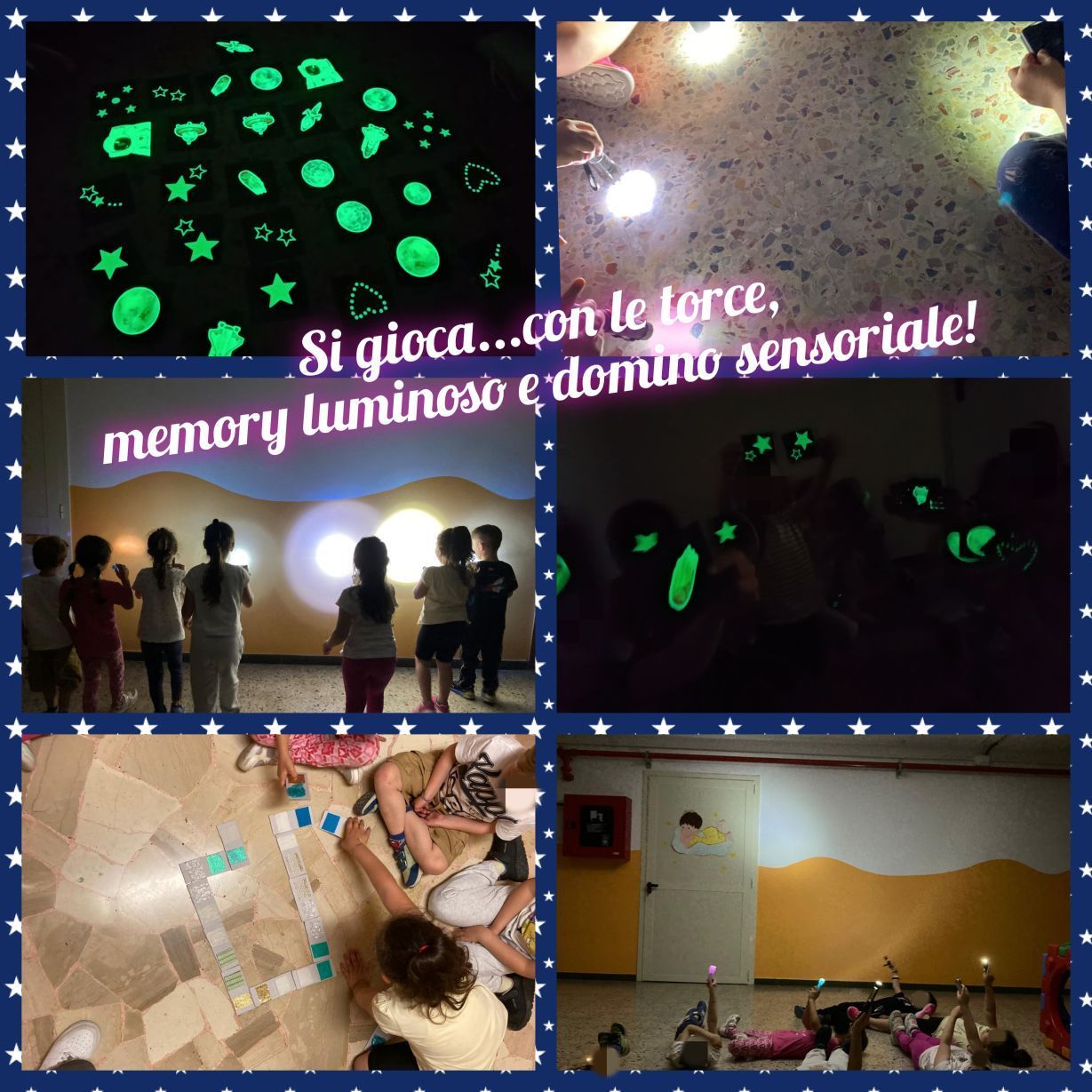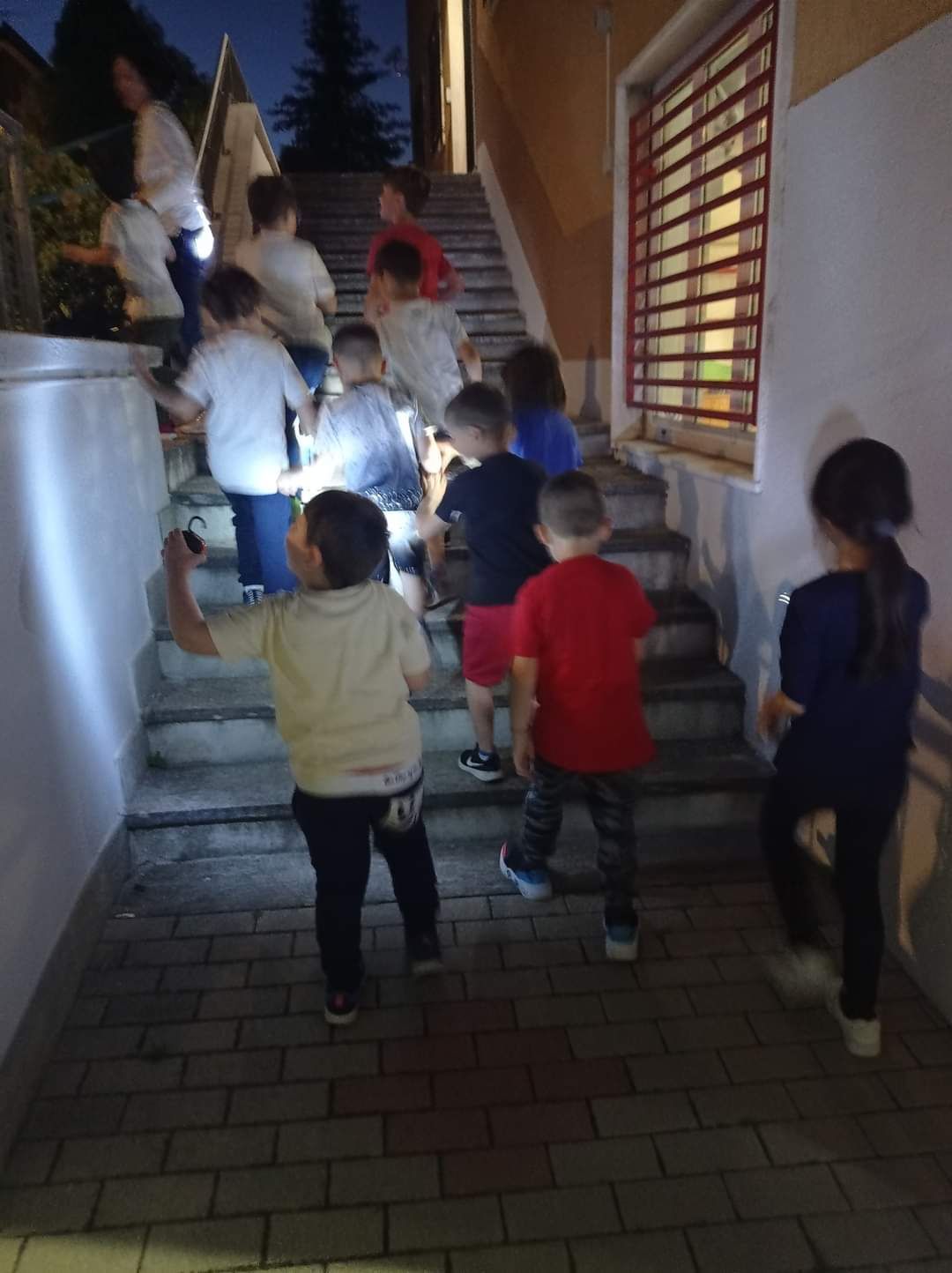 Potrebbero esserci giochi con le torce che disegnano ombre danzanti sulle pareti, trasformando le aule conosciute in scenari fantastici. Un momento dedicato all'osservazione del cielo (anche solo dalla finestra o con stelle proiettate sul soffitto) per ammirare la luna e cercare le costellazioni, stimolando la loro curiosità e meraviglia.