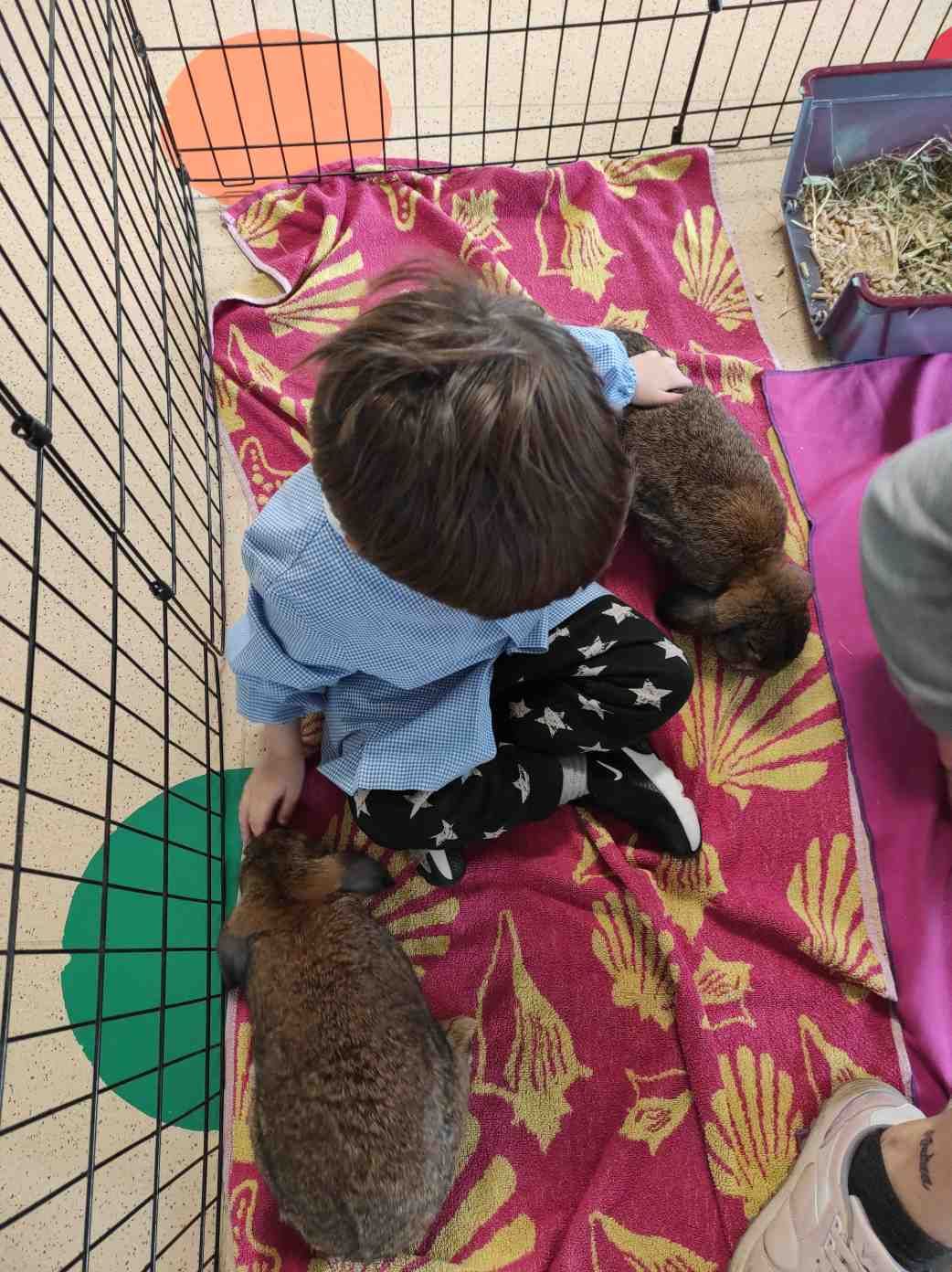 È stata un'esperienza davvero tenera per tutti i bambini. I coniglietti erano così mansueti e affettuosi che i bambini non resistevano a coccolarli e accarezzarli.